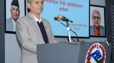 काठमाडौं, १३ फागुन । नेपाल प्रहरीका प्रहरी महानिरीक्षक दान बहादुर कार्कीको समुपस्थितिमा प्रतिनिधि सभा सदस्य निर्वाचन २०८२ सुरक्षा व्यवस्थापन र सुदृढीकरण विषयक अन्तरक्रिया कार्यक्रम नेपाल प्रहरी प्रधान कार्यालयमा बुधबार सम्पन्न भएको छ । कार्यक्रममा पूर्वथप समाचार