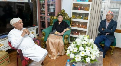 काठमाडौं, २२ मंसिर । प्रधानमन्त्री सुशीला कार्कीले नागरिक बचाउ अभियानको टोलीसँग भेटघाट तथा छलफल गरेकी छन् । दुर्गा प्रसाईँको नेतृत्वमा आएको उक्त टोलीसँगको छलफलमा गृहमन्त्री ओमप्रकाश अर्याल, प्रधानमन्त्रीका मुख्य सल्लाहकार अजयभद्र खनाल, जनसम्पर्क सल्लाहकार गोविन्दनारायणथप समाचार