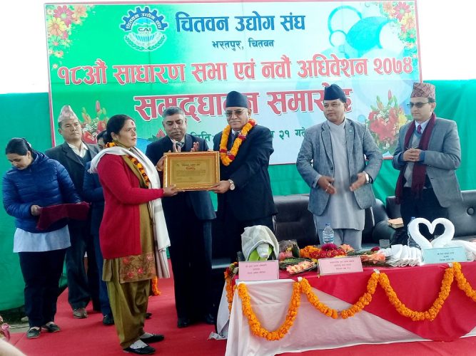 चितवन उद्योग संघको १८औँ वार्षिक साधारणसभा तथा नवौँ अधिवेशनको आज यहाँ उद्घाटन गर्दै उहाँले नेपाललाई संसारले हेर्नै पर्ने देश बनाउनुपर्नेमा जोड दिनुभयो ।