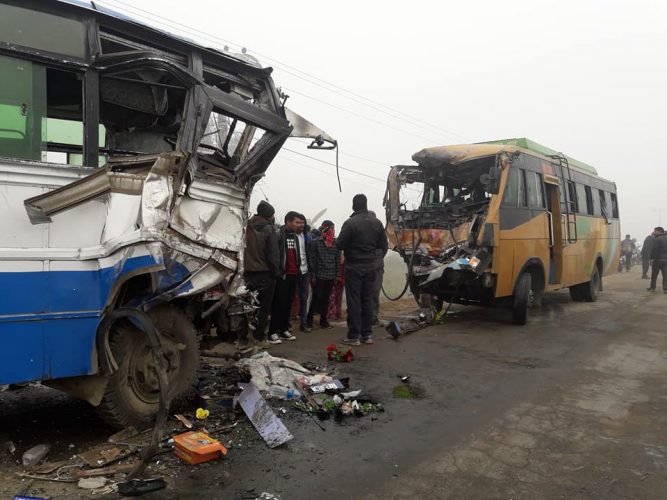 कैलालीमा एक–आपसमा बस ठोक्किँदा १९ जना घाइते