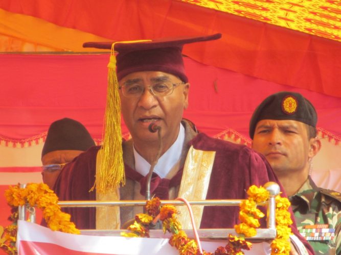 कञ्चनपुरको भीमदत्तनगरमा आज सुदूरपश्चिम विश्वविद्यालयको प्रथम दीक्षान्त समारोहलाई सम्बोधन गर्दै प्रधानमन्त्री एवं सुदूरपश्चिम विश्वविद्यालयका कुलपति देउवाले नेपालका विश्वविद्यालयबाट उत्पादित जनशक्ति विश्वका धेरै मुलुकमा उच्च र सुविधाजनक क्षेत्रमा काम गर्न सफल भएको बताउनुभयो ।