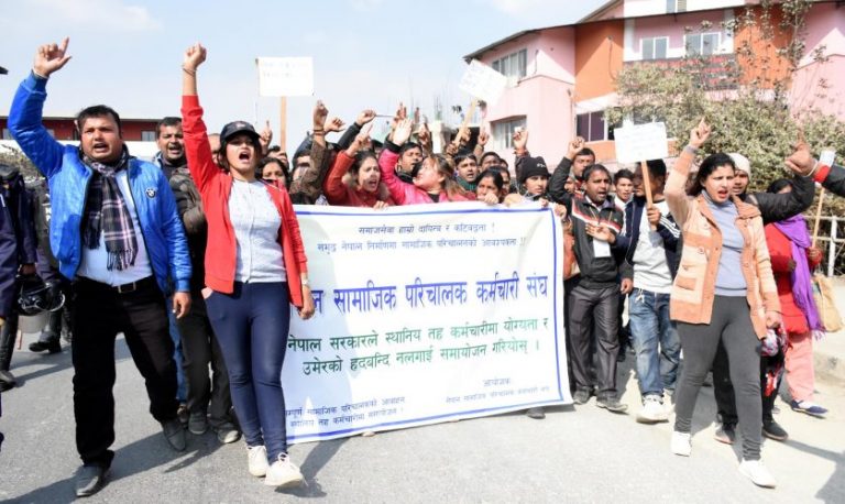 काठमाडौं, ३० पुस । स्थानीय निकायमा विगत आठ वर्षदेखि सामाजिक परिचालकको रूपमा काम गरेका पाँच हजार कर्मंचारी आन्दोलित भएका छन् ।