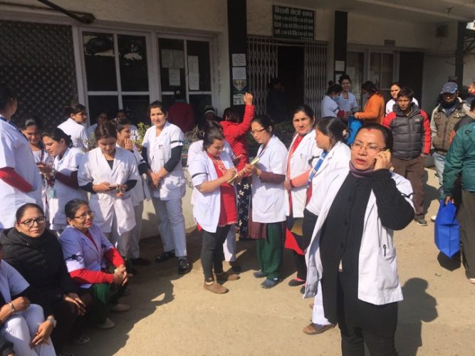 माग पूरा नभएको भन्दै नर्सले आजदेखि ३ गतेसम्म दिनको तीन घण्टा काम छाडेर विरोध जनाउने छन् । संघकी कार्यवाहक अध्यक्ष गंगा थापाले माग पूरा नभए माघ ४ गतेदेखि ६ गतेसम्म सबै अस्पताल र शैक्षिक संस्थामा बिहान ८ देखि ४ बजेको सिफ्टमै काममा नजाने बताउनुभयो ।