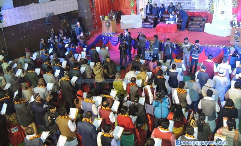 प्रदेश नम्बर दुईका प्रदेश सभा सदस्यले आइतबार जनकपुरमा आयोजित विशेष समारोहमा पद तथा गोपनीयताको शपथ ग्रहण गरेका छन्। जनकपुर उद्योग वाणिज्य संघको सभाकक्षमा आयोजित शपथ ग्रहण समारोहमा आठ जिल्लाका एक सय सात सांसदले आ– आफ्नो मातृभाषामा पद तथा गोपनियताको सपथ लिएका हुन्। प्रदेश २ का सांसदले विभ्नि चार भाषामा शपथ लिएका छन्।
