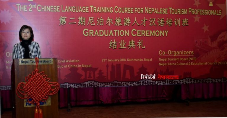 नेपाल–चीन सांस्कृतिक तथा शैक्षिक परिषद्ले नेपालस्थित चिनियाँ दूतावास, संस्कृति पर्यटन तथा नागरिक उड्डयन मन्त्रालय तथा पर्यटन बोर्डको संयुक्त सहकार्यमा भाषा प्रशिक्षण दिइरहेको छ । पर्यटन बोर्डमा ६ महिनादेखि भएको भाषा प्रशिक्षणको दोस्रो चरण समापनमा राजदूत युले यस्तो धारणा राखेकी हुन् ।