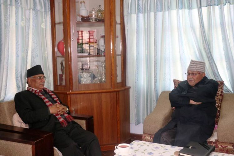 काठमाडौं, १ फागुन । वाम गठबन्धनका प्रमुख नेताद्धय एमाले अध्यक्ष केपी शर्मा ओली र नेकपा माओवादी केन्द्रकका अध्यक्ष पुष्पकमल दाहाल प्रचण्डबीच पार्टी एकताको विषयमा आज भएको छलफल सकारात्मक भएको छ ।