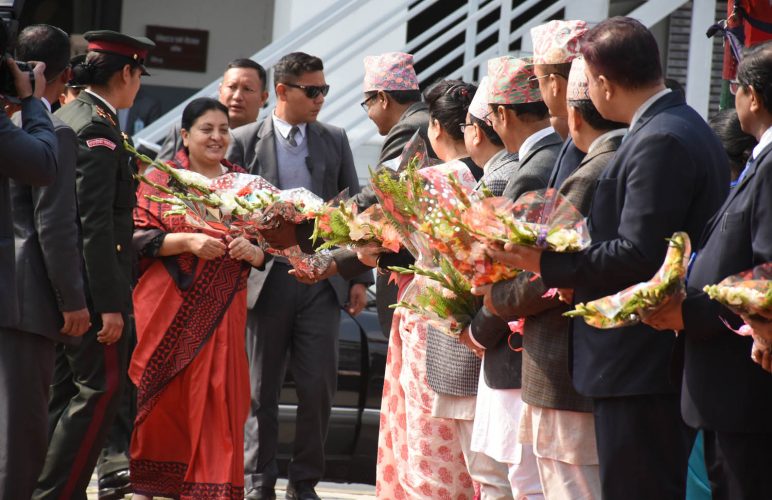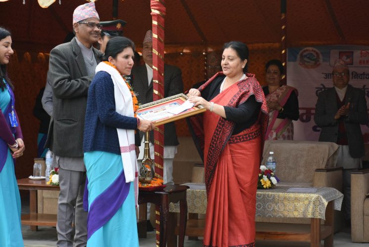 काठमाडौँ, ७ फागुन । राष्ट्रपति विद्यादेवी भण्डारी दोस्रो निर्वाचन दिवसको उपलक्ष्यमा आज आयोजित समारोहमा सरिक हुनुभयो । कान्तिपथस्थित निर्वाचन आयोग परिसरमा आयोजित उक्त समारोहमा राष्ट्रपति भण्डारीले आयोगमा दीर्घसेवा गर्ने कर्मचारीलाई दीर्घसेवा पदक तथा प्रमाणपत्र प्रदान गर्नुभयो ।