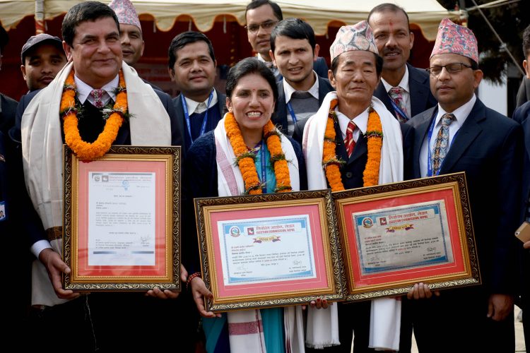 दीर्घसेवा प्राप्त गर्नेमा हलुका सवारी चालक अनिल थापा र कम्प्यूटर अपरेटर लक्ष्मी आचार्य हुनुहुन्छ । निर्वाचनलाई सफलतापूर्वक सम्पन्न गर्न दिएको जिम्मेवारी उत्कृष्ट ढंगबाट कार्यसम्पादन गरेबापत उपसचिव देशबन्धु अधिकारीलाई तीन ग्रेड प्रदान गर्ने घोषणा गरियो ।