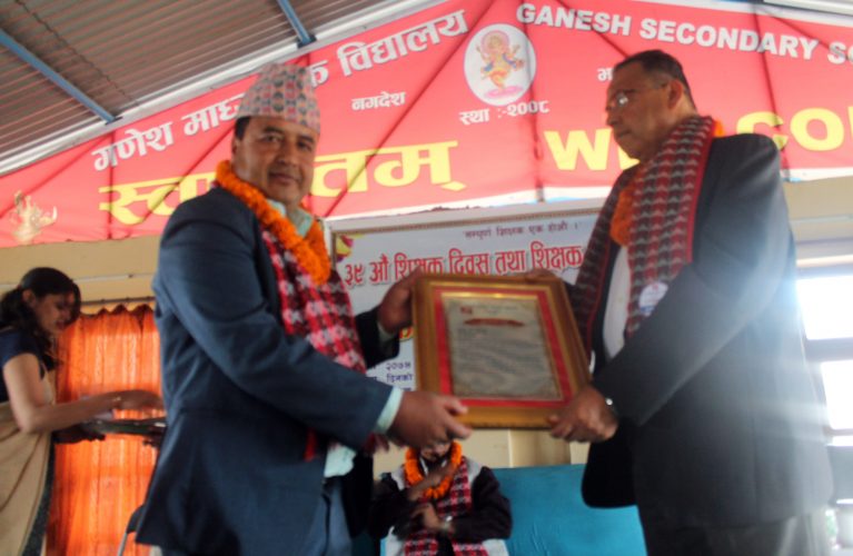उहाँले प्रतिनिधिसभा सदस्य महेश बस्नेतलाई दोसल्ला ओढाएर सम्मान गर्नुभयो । कार्यक्रममा सेवा निवृत्त ुभएका तथा उत्कृष्ट कार्यसम्पादन गरेका शिक्षक शिक्षिकालाई पनि सम्मान गरिएको थियो ।