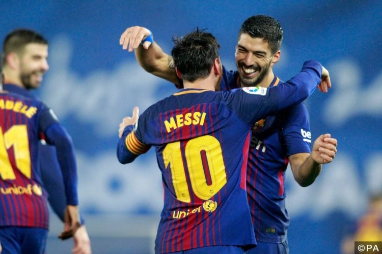 गएरातिको खेलमा बार्सिलोनालाई विजयी गराउन लुईस सुवारेज र सामुएल उम्टिटीले एक/एक गोल गरे ।