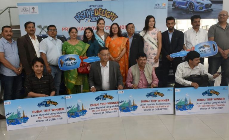 काठमाडौं, ६  बैशाख : हुण्डाई गाडीको आधिकारिक विक्रेता लक्ष्मी इन्टरकन्टिनेन्टलले दशैं तिहारको उपलक्ष्यमा ल्याएको ‘हुण्डाई फेस्टिभल डिलाइट’ अफरको विजेताहरुलाई पुरस्कार हस्तान्तरण गरेको छ।