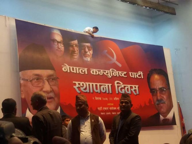 काठमाडौं, ९ बैशाख । कम्युनिष्ट पार्टीको स्थापना दिवसमा लेनिन र माओको तस्वीरविनाको ब्यानर बन्नुमा आफूहरुको गल्ती भएको केपी ओली र प्रचण्डले स्वीकार गरेसँगै नयाँ ब्यानर ल्याईएको छ ।