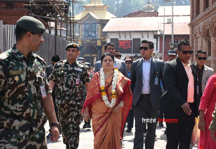 मन्दिरमा पूजाआजापछि राष्ट्रपति भण्डारी कोषको कार्यालय जानु भई पशुपति क्षेत्रमा सञ्चालित राष्ट्रिय गौरवको आयोजना, भूकम्पपछिको पुनःनिर्माणलगायत गतिविधिका बारेमा जानकारी लिनुभएको कार्यकारी निर्देशक रमेशकुमार उप्रेतीले राससलाई जानकारी दिनुभयो ।