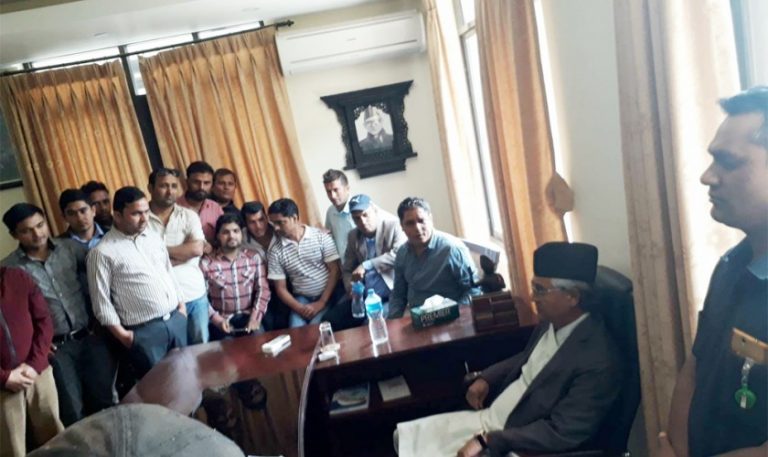 महामन्त्री कुन्दन काफ्लेको नेतृत्वमा गएको टोलीमा उपाध्यक्षद्वय रामप्रसाद अधिकारी, डिल्लीराम सुवेदी तथा सहमहामन्त्री परमेश्वर साहसहितका नेविसंघ नेताहरु सहभागी रहेको नेवि संघ नेता निरन्जन थापाले बताए ।