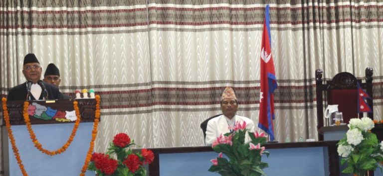 प्रधानमन्त्री ओलीले पहिलोपटक प्रदेश नं ५ को प्रदेशसभा बैठकलाई आज बुटवलमा सम्बोधन गर्दै तीनवटै तहका सरकारको ध्यान अब आर्थिक विकास र समृद्धिका लागि लाग्नुपर्ने बताउनुभयो ।