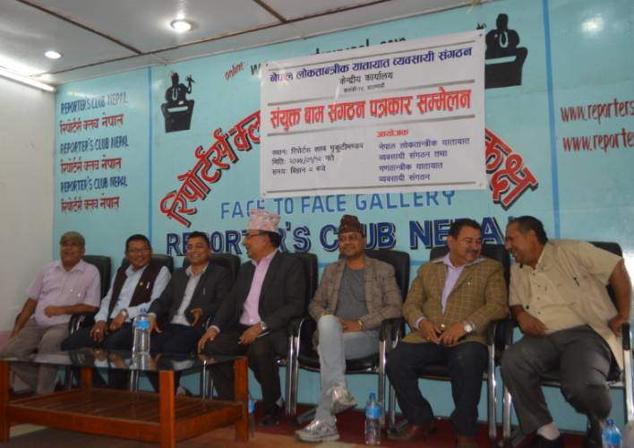 देश बिकासको मेरुदण्डको रुपमा रहेको यातायात क्षेत्र स्वदेशी निम्न मध्यम वर्गको अन्दाजी १० खर्व भन्दा बढी लगानी, ४० लाख भन्दा बढी प्रत्यक्ष र अप्रत्यक्ष रोजगारी सिर्जना गरी मजदुर र व्यवसायीको हितका लागि बिगत ४१ वर्ष देखि मूलुकको सार्बजनिक क्षेत्रमा सेवा गर्दै आएको, यातायात क्षेत्र का संघ संस्थाहरु वर्तमान अवश्थामा देखा परेका समस्याहरु समाधानार्थ यस क्षेत्रको सुधारको लागि निम्नानुसार ब्यवस्थापन गर्दा निजि क्षेत्रबाट यस पेशामा भएको खर्बौंको लगानी तथा श्रमको सुरक्षा साथै आम नागरीकले सहज उपयोग गर्न सक्ने सेवा भएको हुंदा निम्नलिखित समस्या समाधानका लागि बुदागत रुपमा बाम संगठनका तर्फबाट सम्युक्त रुपमा सुझाव सहित आज पत्रकार सम्मेलनमा हामी दुबै संगठन उपस्थित भएका छौं ।