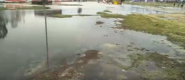 मोदीलाई अभिनन्दन गर्ने तयारी भइरहेको रंगभूमि मैदान पानीले जलमग्न
