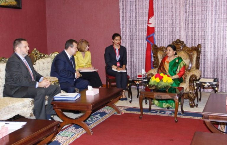 काठमाडौँ, २३ वैशाख : राष्ट्रपति विद्यादेवी भण्डारीसँग गणतन्त्र सर्बियाका प्रथम उपप्रधानमन्त्री एवं परराष्ट्रमन्त्री इभिका डेसिसले आज अपराह्न राष्ट्रपति भवन शीतल निवासमा शिष्टाचार भेट गर्नुभयो ।