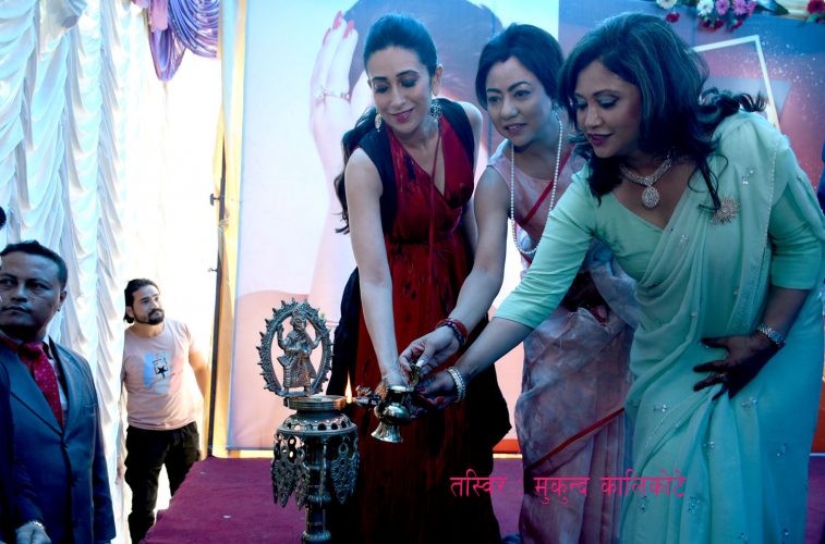 काठमाडौं, २४ बैशाख । बलिउड अभिनेत्री करिश्मा कपुरले दरबारमार्गमा रहेको मेरिगोल्ड सयपत्री ज्वेलर्सको नयाँ शोरुम उद्घाटन गरेकी छन् । सोमबार नेपाल आएकी नायिका कुपर पछिल्लो समय फिल्ममा सक्रिय छैनन् । श्रीमान सञ्जय कपुरसँग सम्वन्ध विच्छेद पछि उनी सन्दिप तोसनीवालसँग डेट गरिरहेकी छिन् । उनका एक छोरी र एक छोरा छन् ।