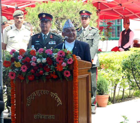 काठमाडौँ, २४ वैशाख : प्रधानमन्त्री केपी शर्मा ओलीले नेपालको राष्ट्रिय सुरक्षाको प्रश्न उन्नतस्तरमा पुगेको बताउनुभएको छ ।
