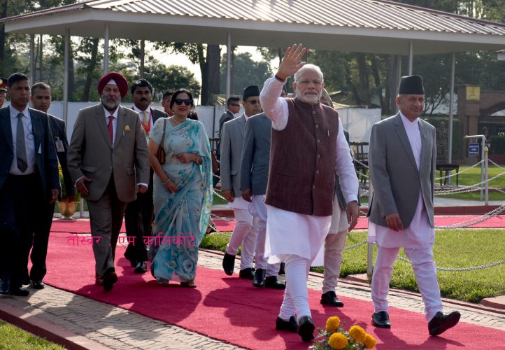 त्रिभुवन अन्तराष्ट्रिय विमानस्थलको अतिविशिष्ट कक्षमा मोदीलई परराष्ट्रमन्त्री प्रदीपकुमार ज्ञवालीले विदाई गरेका हुन् ।