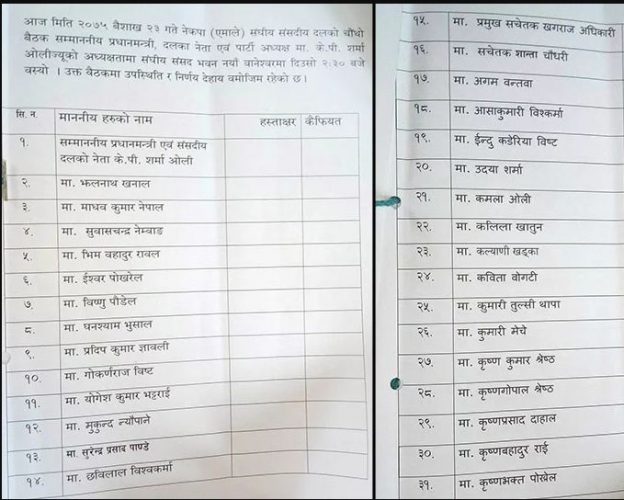 संसदीय फाँटमा दलको नेता, उपनेता, प्रमुख सचेतक र सचेतक पदाधिकारी मानिने भएकाले पार्टी र दलको बरियताक्रम फरक फरक बनाइएको एमालेले जनाएको छ ।