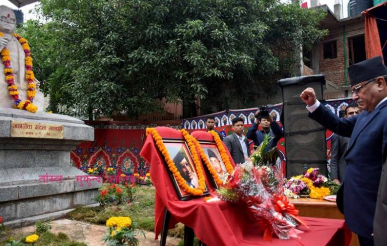 सोही अवसरमा प्रधानमन्त्री ओली, माओवादी केन्द्रका अध्यक्ष दाहाल, एमालेका वरिष्ठ नेता तथा पूर्व प्रधानमन्त्री माधवकुमार नेपाल, रक्षामन्त्री ईश्वर पोखरेल, गृहमन्त्री रामबहादुर थापालगायतले स्व मदन भण्डारी र जीवराज आश्रितको तस्वीरमा माल्यापर्ण गरेका थिए ।