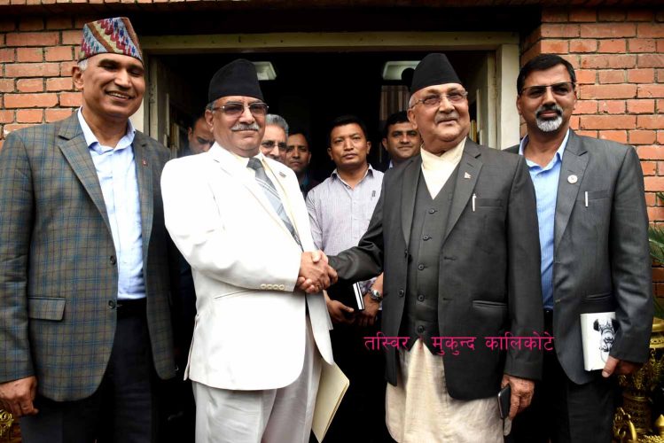काठमाडौँ, ४ जेठ । पुनर्गठित नेपाल कम्युनिष्ट पार्टीका अध्यक्षद्वय केपी शर्मा ओली र पुष्पकमल दाहाल ‘प्रचण्ड’ले आज यसअघि धूम्रबाराही र पेरिसडाँडामा रहेका नेकपा एमाले र नेकपा माओवादी केन्द्रका केन्द्रीय कार्यालयको अवलोकन गर्दै हुनुहुन्छ ।