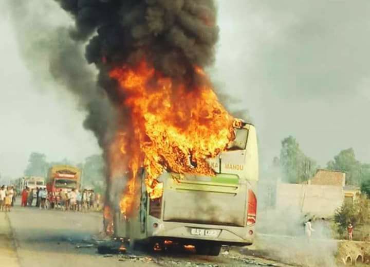 गुड्दा गुड्दै यसरी जल्यो बस (फोटो/भिडियो)