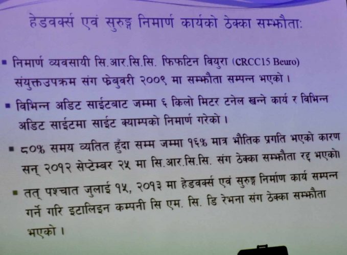 यसअघि पटक–पटक मेलम्चीको पानी आउने भनेपनि ठेकेदार र खानेपानी मन्त्रालयबीचको लेनदेन विवादले काम प्रभावित हुदै जाँदा मेलम्चीको पानी काठमाडौवासीका लागि ‘आकासको फल आँखातरी मर’ भनेजस्तै हुदै आएको थियो ।