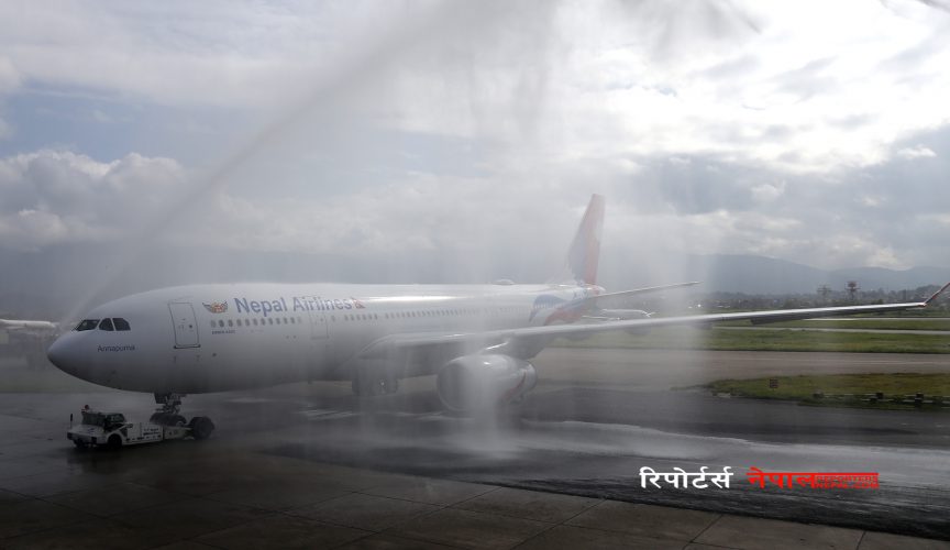 काठमाडौं,१४ असार। नेपाल वायुसेवा निगमले पहिलोपटक वाइडबडी विमान खसरद गरेको छ । ‘ए ३३०–२००’ सिरिजको विमान बिहीबार बिहान नेपाल भित्र्याएको हो । नयाँ विमानलाई ‘अन्नपूर्ण’ नामले चिन्न सकिने छ ।