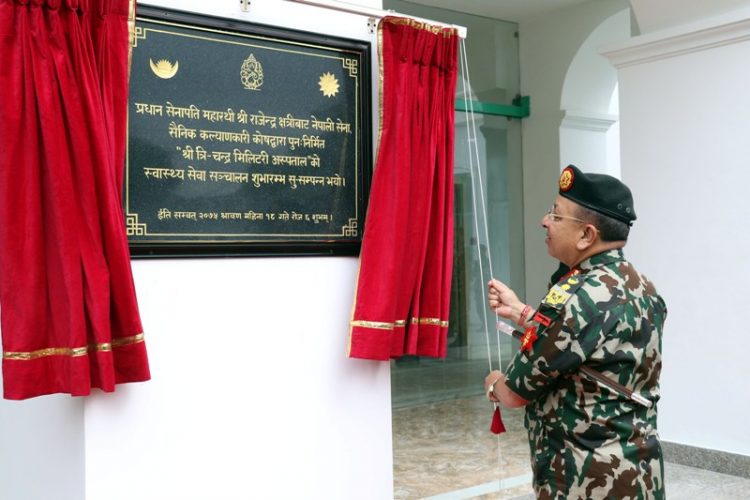 काठमाडौँ, १८ साउन । प्रधानसेनापति राजेन्द्र क्षत्रीले त्रिभुवन–चन्द्र मिलिटरी अस्पतालको नवनिर्मित भवनको आज उद्घाटन गरेका छन।