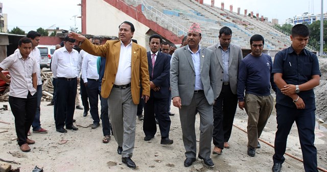 त्रिपुरेश्वरस्थित दशरथ रंगशाला, सातदोबाटोस्थित कराते हल, पौडी पोखरी, कन्फ्रेन्स हल, सुटिङ रेन्ज र च्यासलस्थित एन्फा टेक्निकल सेन्टरको उनले निरीक्षण गरेका हुन।