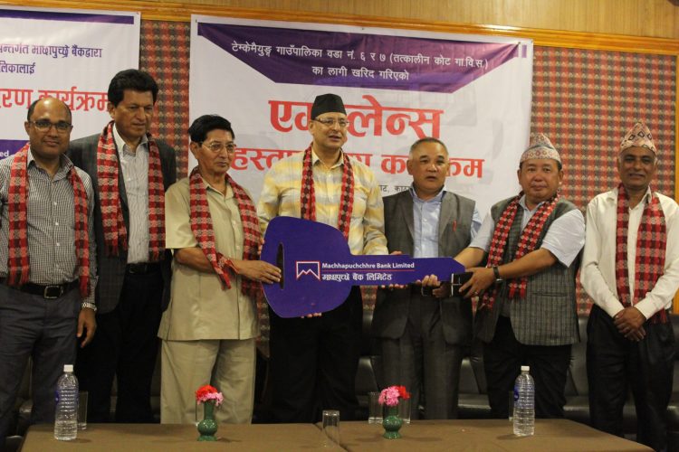 माछापुच्छ्रे बैंकद्वारा एम्बुलेन्स सहयोग