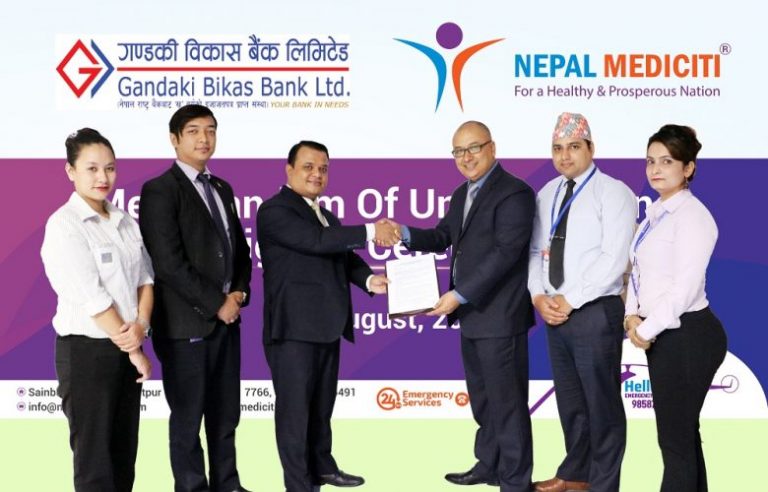 भैंसेपाटीस्थित् नेपाल मेडिसिटी अस्पताल र पोखरामा मुख्य कार्यालय रहेको गण्डकी विकास बैंकबीच उपचार सेवा आदान–प्रदानबारे आज सम्झौता भएको छ ।