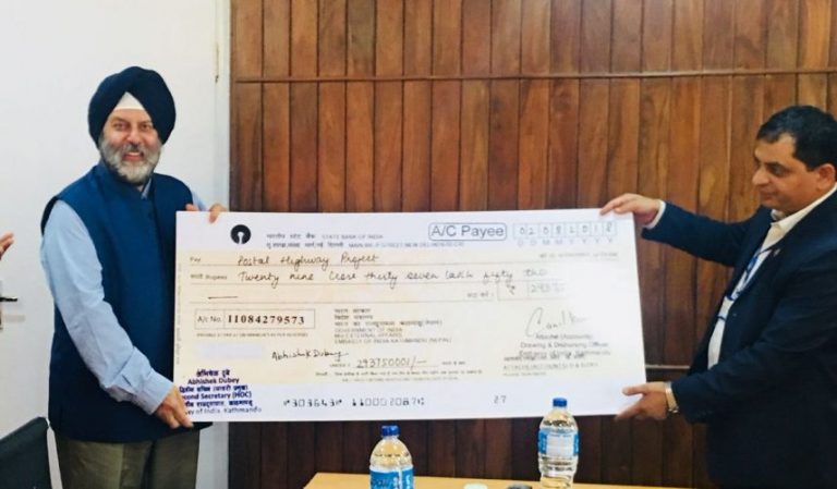 भारतीय राजदूत मञ्जिव सिंह पुरीले भौतिक पूर्वाधार तथा यातायात मन्त्रालयका सचिव मधुसुदन अधिकारीलाई उक्त रकमको चेक हस्तान्तरण गरेका हुन्।