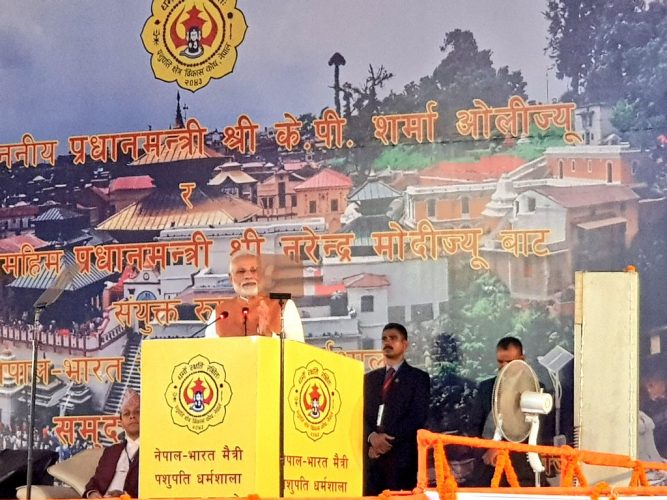 शुक्रबार साँझ काठमाडौंमा चास सय बेडको नेपाल–भारत मैत्री पशुपति धर्मशालाको प्रधानमन्त्री केपी शर्मा ओलीसँग संयुक्त उद्धघाट्न गर्दै भारतीय प्रधानमन्त्री मोदीले यस्तो बताएका हुन् ।