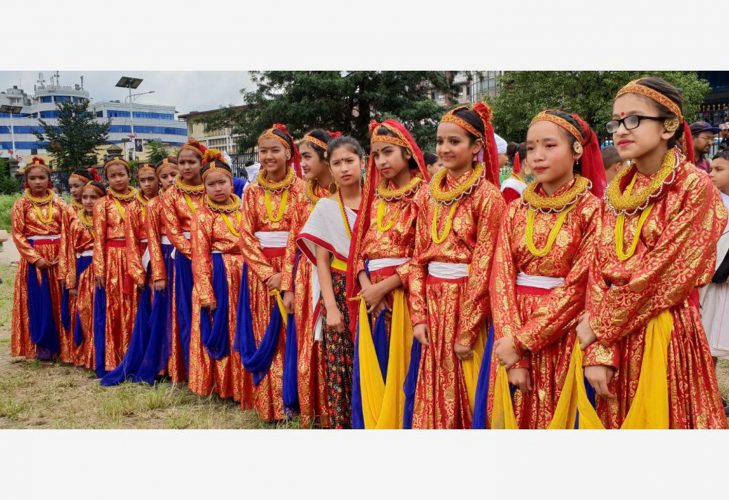 सोमबार राजधानीको टुडीखेलमा गौरा पर्वको अवशरमा परम्परागत पहिरनमा सुदुर पश्चिमका बालबालिका