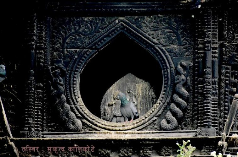 मन्दीरको झ्यालमा बसेर संसार नियाली रहेको एक्लो परेवा