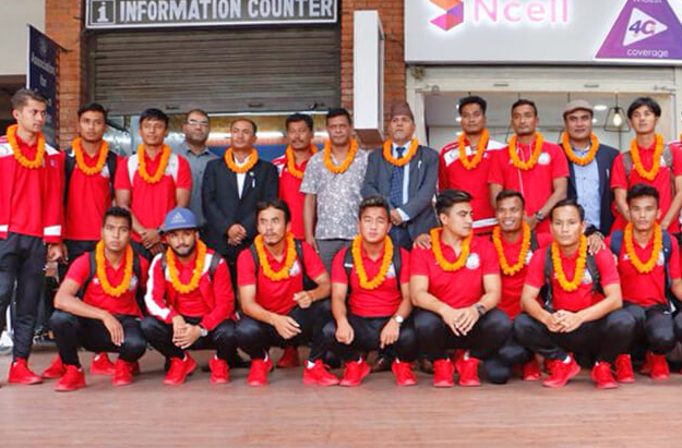 नेपाली टोली ११ः३० बजे त्रिभुवन अन्तर्राष्ट्रिय विमानस्थल आइपुगेको हो । बङ्गलादेशमा भएको साफको १२आँै संस्करणमा सहभागिता जनाएको नेपाल सेमिफाइनलमा माल्दिभ्ससँग पराजित हँुदै घर फर्किएको हो ।