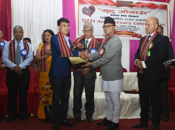 काठमाडौं, ३१ भदौ । मुटु जोगाऊँ ‘सेभ द हार्ट’ले पत्रकार रुद्र कार्कीलाई सम्मान गरेको छ । पत्रकारिताको माध्यमले नेपाली जनमानसमा स्वास्थ्यसम्वन्धि जनचेतना अभिवृद्धि गरेको योगदानको कदर गर्दै सेभ द हार्टको पाँचौ वार्षिकोत्सवको अवसरमा आज रिपोर्टर्स नेपाल डटकमका सम्पादक कार्कीलाई सम्मान गरिएको हो ।