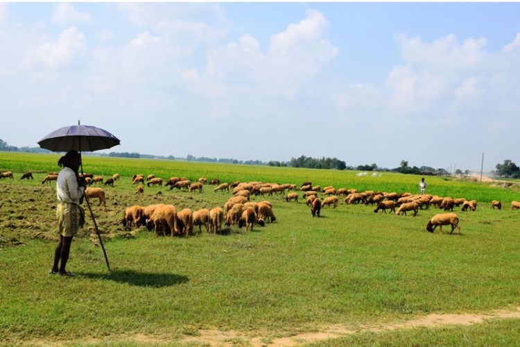 बाँकेको नरैनापुर गाउँपालिका–५ पण्डितपूर्वामा भेडा चराउँदै किसान ।
