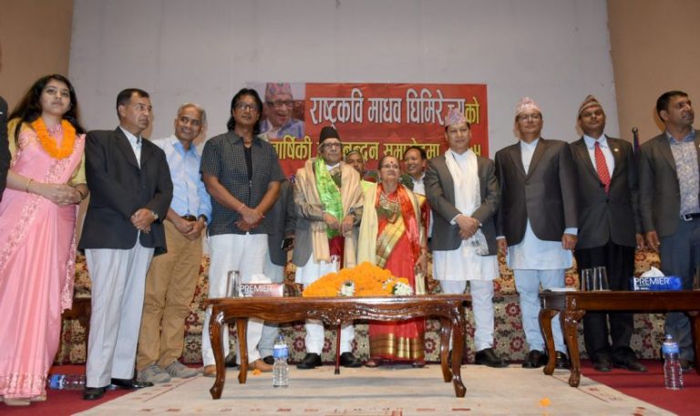 काठमाडौं, १३ असोज । काठमाडौं महानगरपालिका र नागरिक समाजको तर्फबाट राष्ट्रकवि माधवप्रसाद घिमिरेको शताब्दी वर्षगाँठको अवसरमा नागरिक शतवार्षिकी अभिनन्दन गरिएको छ ।