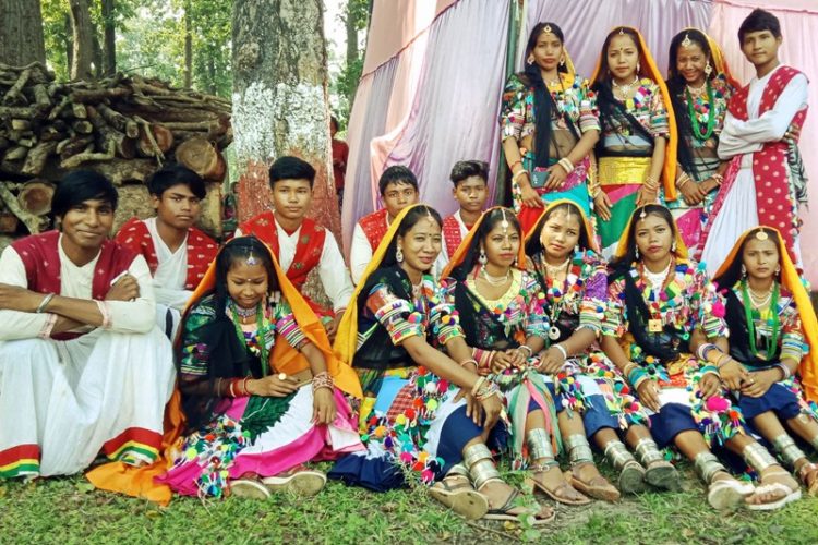 परम्परागत पोशाकमा सांस्कृतिक समारोहमा सहभागी कञ्चनपुर सिंहपुरका राना थारु युवा युवती