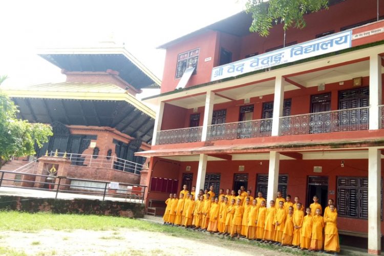 तनहुँको प्रसिद्ध धार्मिकस्थल गलेश्वर आश्रम देवघाटस्थित वेदवेदाङ्ग विद्यालयमा निशुल्क अध्ययनरत बटुकहरु ।