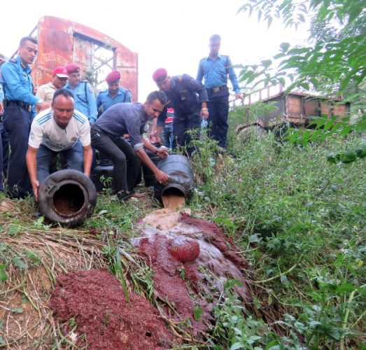 पर्वत । जिल्लाका गल्लीगल्ली र होटलमा अवैध रूपमा बिक्री वितरण हँुदै आएको घरेलु मदिरा नष्ट गरिएको छ । सदरमुकाम कुश्मा बजारका विभिन्न क्षेत्रबाट बरामद गरिएको १२०० लिटर घरेलु मदिरा नष्ट गरिएको हो ।