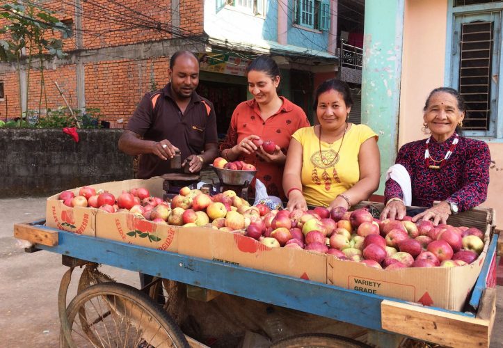 मुस्ताङमा उत्पादित स्याउ बागलुङ बजारमा बिक्री गदैं एक व्यापारी ।