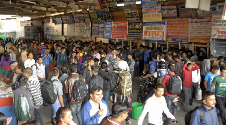 असोज २६, काठमाडौँ । दशैँ नजिकिएसँगै उपत्यकाबाट बाहिरिने यात्रुको सङ्ख्यामा वृद्धि हुँदै गएको छ । महानगरीय ट्राफिक प्रहरी महाशाखाका अनुसार उपत्यकाका विभिन्न नाकाबाट दैनिक एक लाखभन्दा बढी यात्रु बाहिरिने गरेका छन् ।