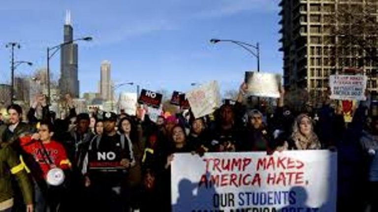 काठमाण्डौँ,२८ असोज । अमेरिकाको सिकागोमा राष्ट्रपति डोनाल्ड ट्रम्पको विपक्षमा हजारौंले प्रदर्शन गरेका छन् ।आउदो नोभेम्बरमा हुने सिनेटको मध्यावधि निर्वाचनको पूर्वसन्ध्यामा डेमोक्रयाट पार्टीका समर्थकहरुले ट्रम्पको विपक्षमा प्रदर्शन गरेका हुन् ।