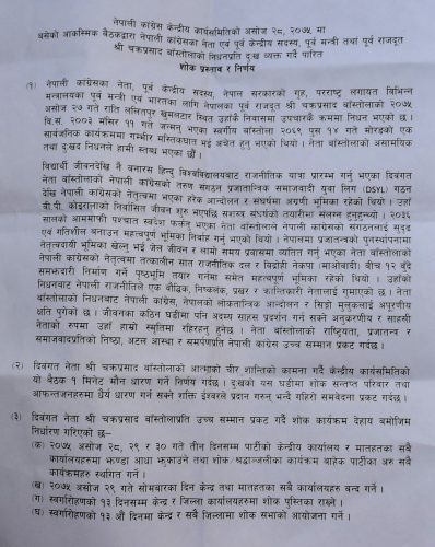काङग्रेसले तयार पारेको शोक प्रस्ताव र निर्णयको पूर्णसार